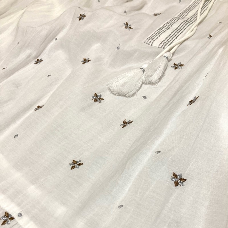 袖と襟元もキラキラ刺繍糸でステッチされています